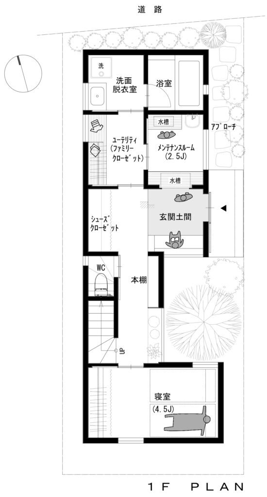 メンテナンスルームは家事室(ユーティリティー)から入るようにしています。